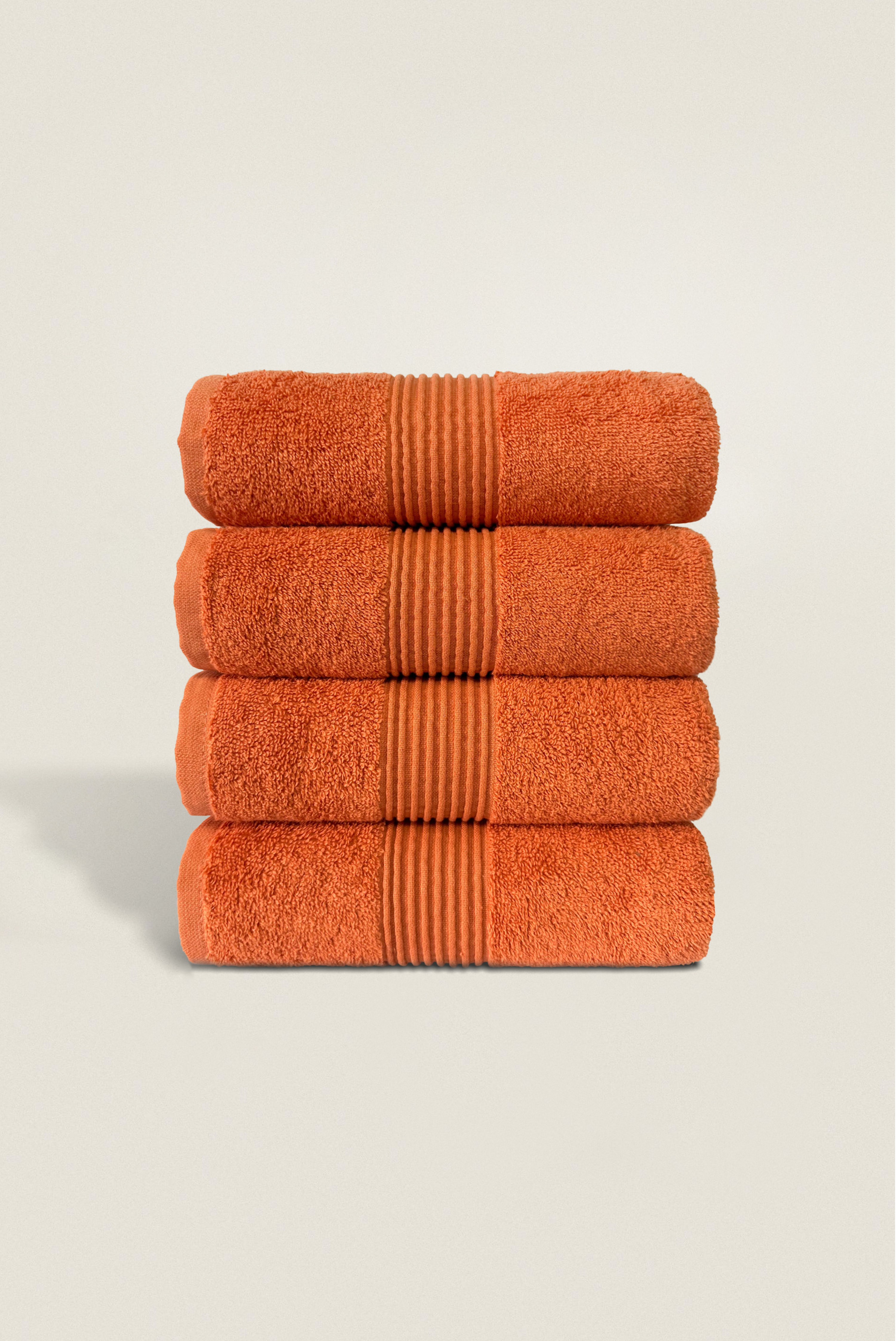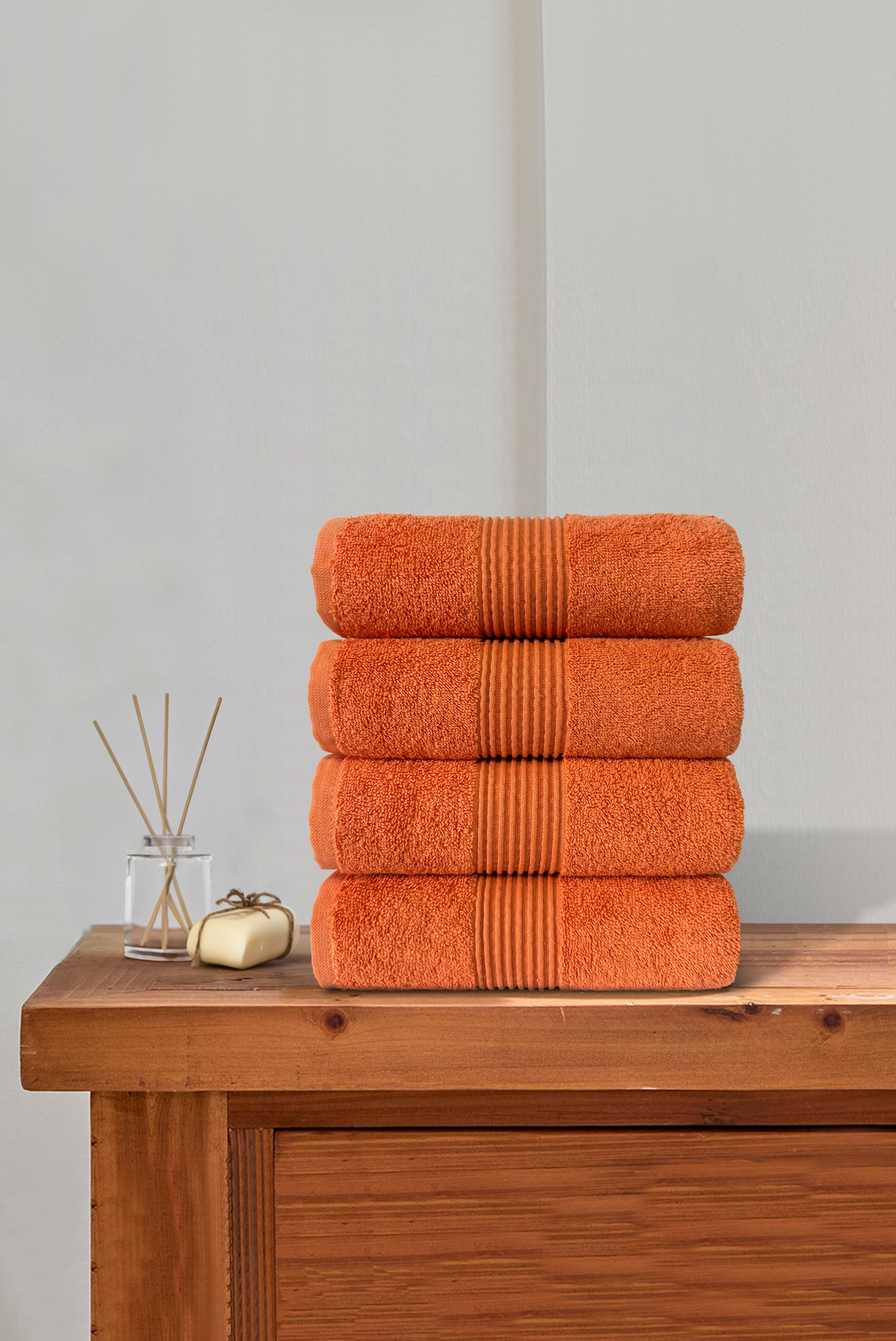 Dark Orange | 4 Piece Hand Towel Set Striped Border | 50x90cm | 100% Turkish Cotton