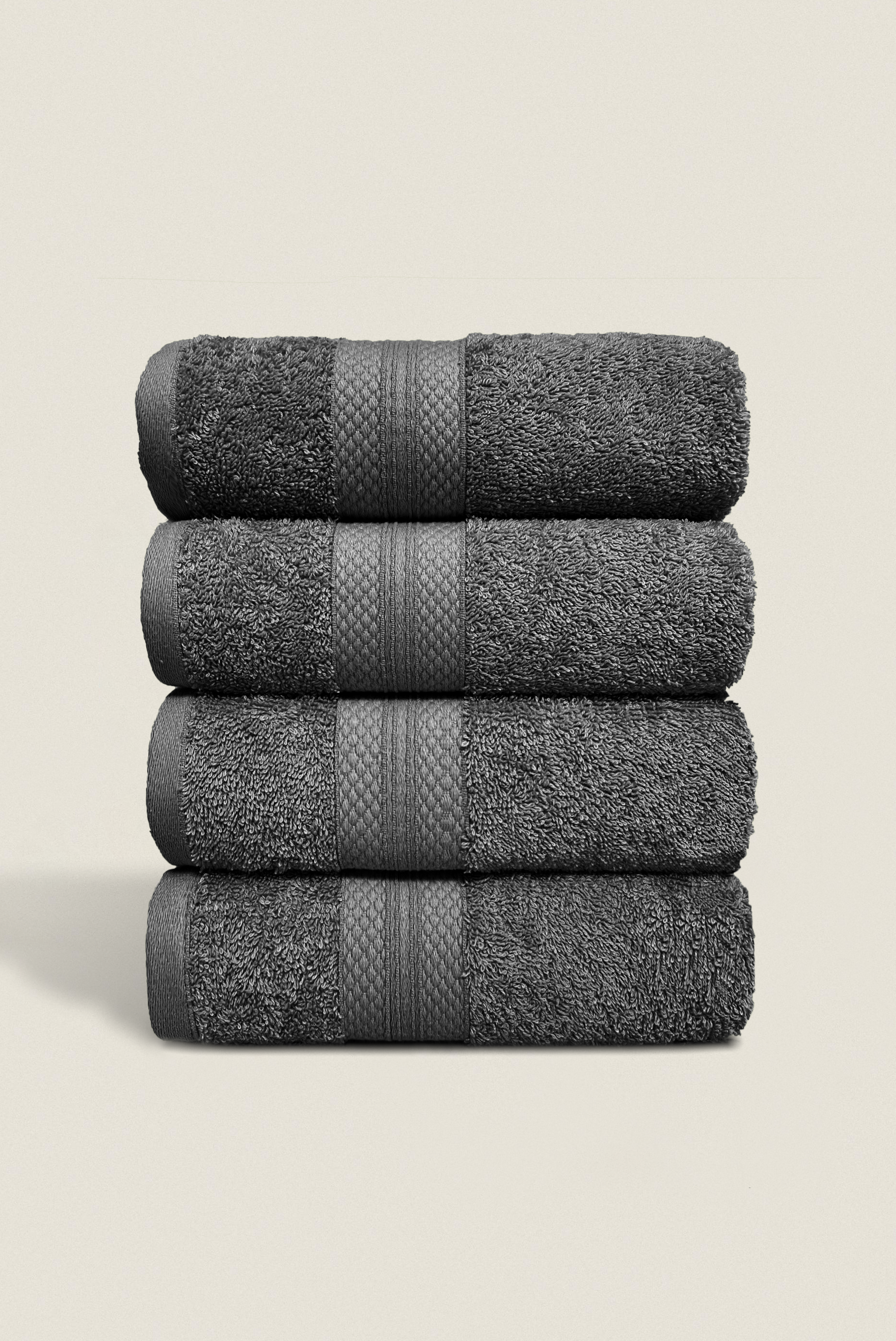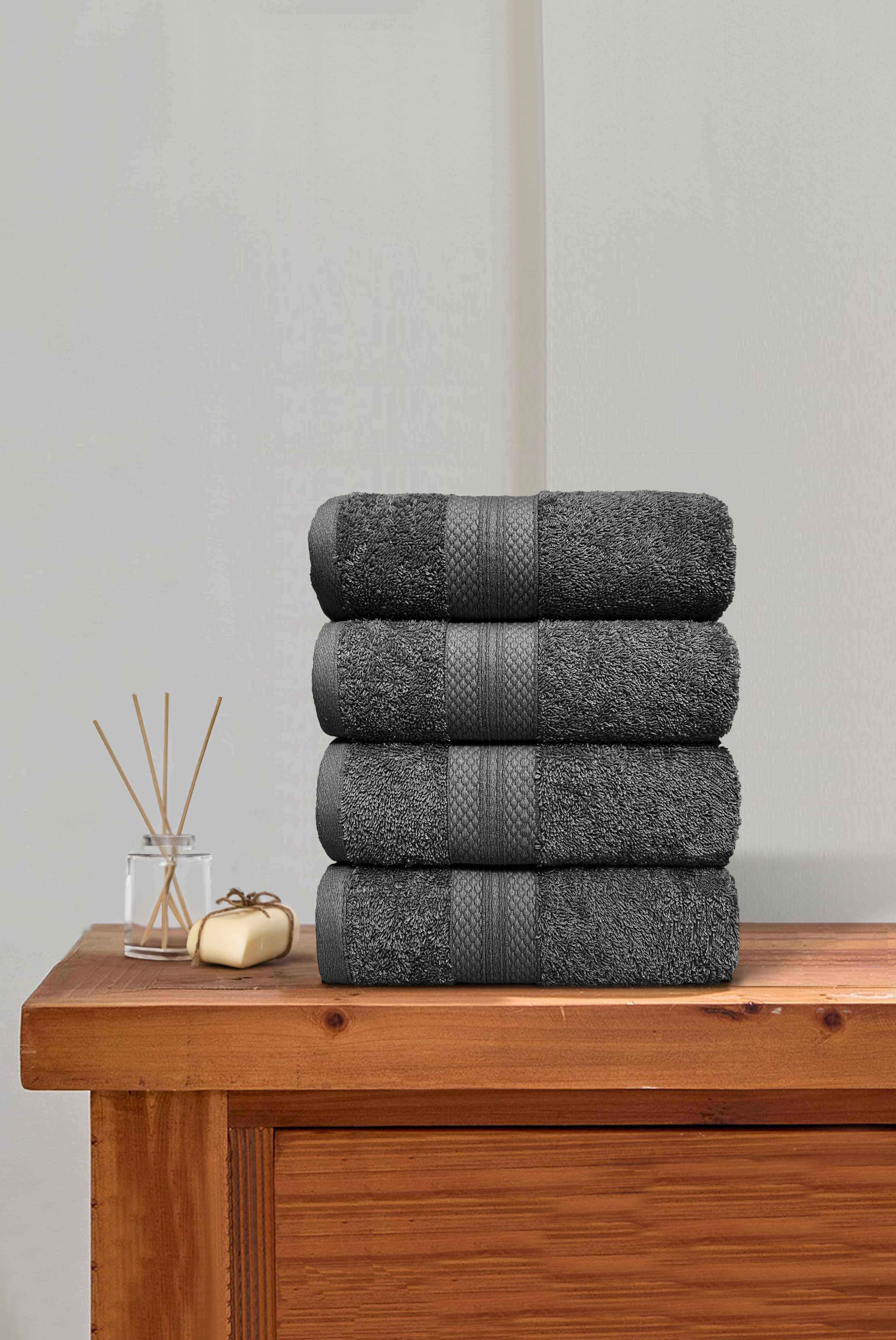 Hard Coal | 4 Piece Hand Towel Set Diamond Border | 50x80cm | 100% Turkish Cotton